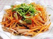 再摆上胡萝卜丝和香菜丝。