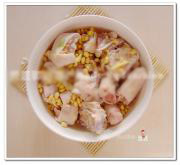 第二天做的时候,把泡好的黄豆和猪蹄倒在一起。
