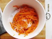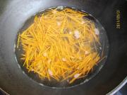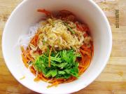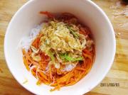 胡萝卜切丝入沸水中略焯。