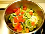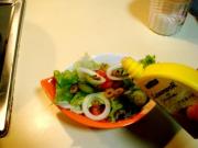 把拌好的蔬菜放入沙拉碗中。