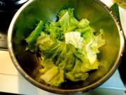 把花叶生、绿甘蓝用手撕成小片。