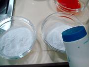 用三只碗分别放入各80克的绿豆淀粉,里面各放少许盐拌匀。