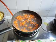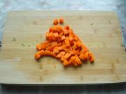 锅中加入适量的水烧开,先放入胡萝卜丁焯烫一会儿。
