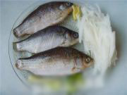 鲫鱼洗净去内脏,白萝卜去皮切丝,葱切段,姜切片。