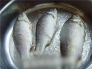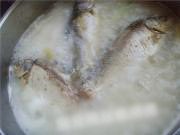 锅置火上油烧热,将鲫鱼煎透,煎好一面再翻面煎就可以防止煎脱鱼皮。