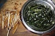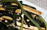 香干切丝,海带开水煮一下剪短过凉。
