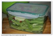 这就是我家用的“乐扣”食品盒,起水的时候,直接用纯净水就可以了,不用烧开,这样做的好处是今后就是新加菜的时候,即便没有完全凉干水汽,也不会生花的,什么道理我也不明白。