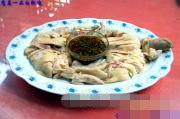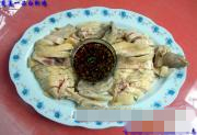 《葱姜一品白斩鸡》装盘操作: 1、取出冷冻的白斩鸡;1、将鸡对称地一劈为二;2、取下鸡爪、鸡翅改刀后;3、码放在腰盘的腰轴线的两侧,留出中心摆放蘸料;4、取下鸡头与鸡脖,改刀后,码放与腰盘顶端边缘的一侧;5、将二片鸡身分别改刀后,将鸡胸肉部分向外,分别对称地码放在腰盘两侧,注意留出蘸料位置;6、将蘸料摆放在腰盘的中心点上后,即可上桌;7、上桌时可装点些香菜等绿叶,用以激活新鲜度,刺激视觉神经,诱发食欲......