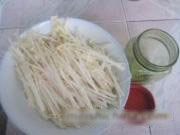 金针菇去根洗净,罐头瓶洗净备用