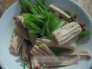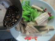 将芹菜段和腐竹段放在容器里