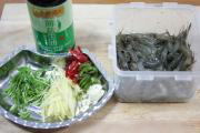 将河虾洗净,将李锦记薄盐生抽、葱、姜、蒜和青红椒放入洗净的河虾中。