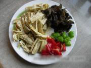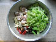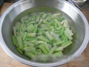 倒入三合油,盐、醋、白糖、味精拌匀。