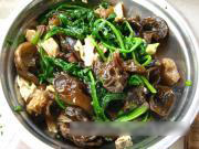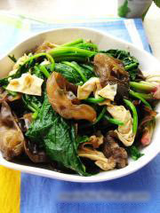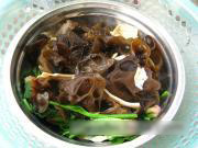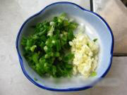 把葱蒜末,香油,酱油,醋,盐,鸡精加到菜里。