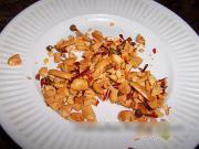 麻辣花生用刀碾碎,【留下几粒整的装饰用】。