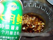 加入醋 香油 盐 鸡精 六月鲜酱油搅拌均匀成料汁。