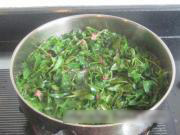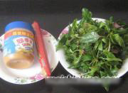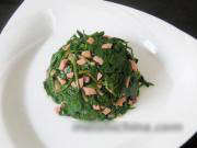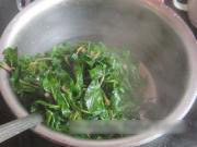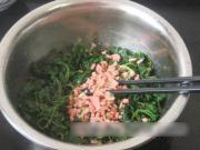 把菠菜放入凉开水浸一下捞出,挤掉一些水份放入大盘.