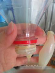 肠衣的一端系上 另一端套在可乐瓶上 记得里面不能有气哦 要挤出去
