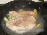 锅里放大半锅水,放下大葱段,姜片,煮开