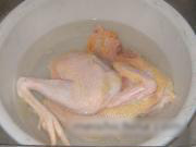 取半只三黄鸡,去杂质,洗净沥干。