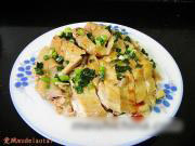 拆去鸡骨,切块装盘.