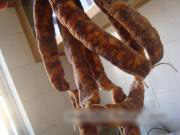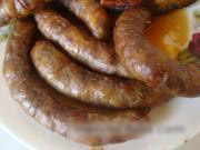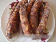 灌好的香肠用牙签扎些小孔,便于排气,挂在阴凉通风干燥处,晾至8-10天。
