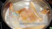 用刀将肉皮上的油脂彻底刮干净至看到透明的肉皮为止。