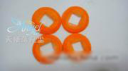 将胡萝卜用挖球器压出圆形的金币,中间用刀刻成方孔。