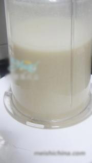 煮熟后稍凉倒入料理机搅拌杯内,加入欣和豆瓣酱。