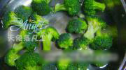 将西兰花和胡萝卜金币加点盐焯熟备用。