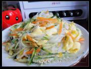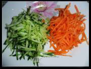 黄瓜和胡萝卜擦成丝。