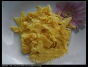 平底锅或电饼铛中抹适量油,倒入蛋液摊成较薄的鸡蛋饼然后铲成片