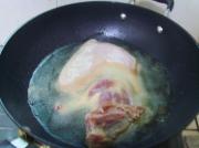 炒锅烧热,加适量油(以没过鸭肉三分之二为宜),烧至七成热,放入鸭肉炸。