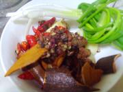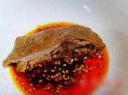 用辣椒酱、生抽、少许醋和香油调个蘸汁,很香哦。