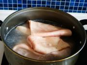 先说一下猪皮的处理,首先先焯一遍水,然后用冷水冲一下,用镊子夹去皮上剩余的猪毛。