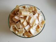 然后再切成小块。(焯过水以后再切猪皮,这比较省劲)
