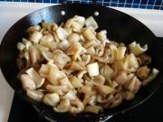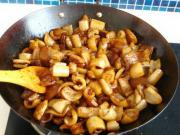 加白砂糖,继续翻炒,炒上糖色。