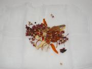 调料包:去一块纱布,在上面放上陈皮,花椒粒,八角,桂皮,肉蔻。