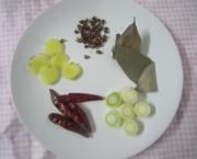 花椒,干辣椒,香叶,生姜,大葱备用。