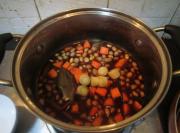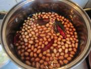 将老抽,,盐,糖(依个人口味),花椒,干辣椒,香叶,生姜,大葱混合煮20分钟;
