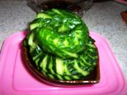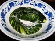 腌制好的黄瓜轻轻挤去汤汁,码放在盘中。