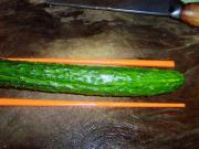 用一双筷子放在黄瓜两侧。