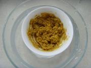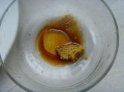 芥末粉放碗中用开水调成糊状,隔水拔凉待用。