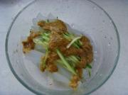 冷却的芥末调入盐、鸡精、醋、香油搅匀成味汁。