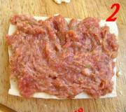 猪肉馅加入蛋液搅匀,再加入葱姜末、盐、生抽、五香粉、甜面酱、鸡精、香油搅拌均匀,彩椒、黄瓜、火腿切小丁备用。