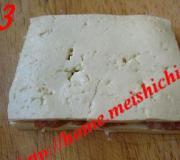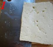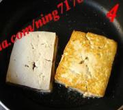 豆腐切成厚约0.5CM的大片(如果刀工够好还可以在切薄一些)。