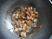 开始炒肉了,放点酱油,盐,花生油。一起炒肉了。