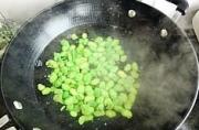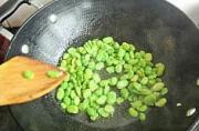 倒入蚕豆米翻炒。
