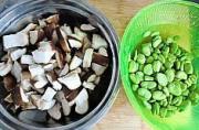 鲜香菇去蒂洗净切块,蚕豆米洗净。