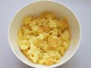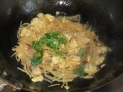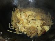 再放入炒好的鸡蛋翻炒一会,加适量盐、味精炒匀。