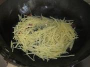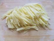 将土豆丝放入盆中,并放一小勺盐,浸泡一段时间。